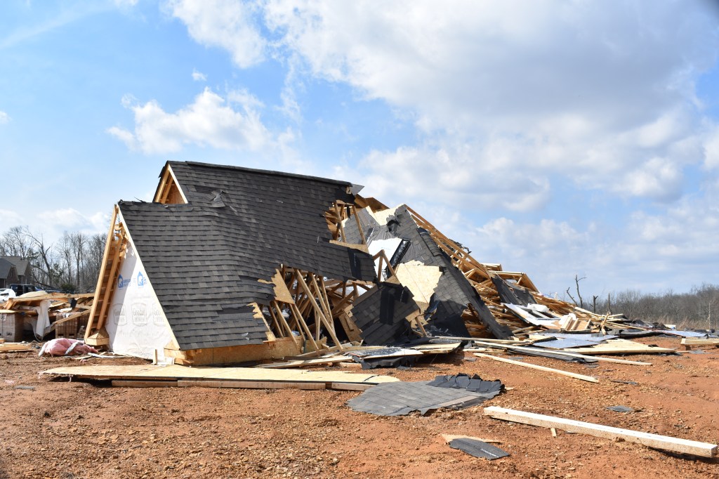 Seen here, a brand new home is demolished by the storm; fortunately, no one had moved into this home before the tornado struck.